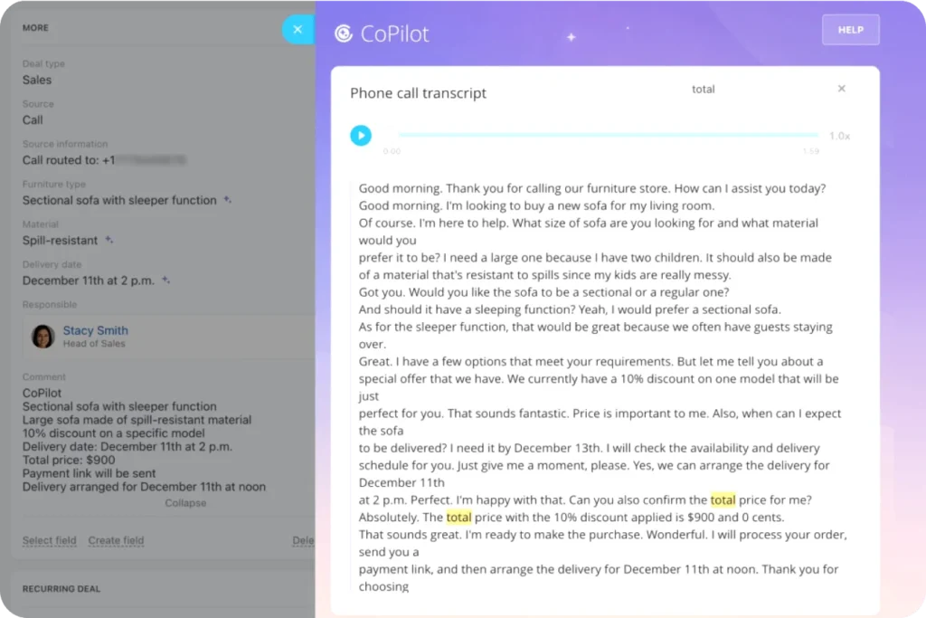 Use our AI-powered tool CoPilot to create original ideas for your special offer, write compelling copy for a promotional email, or even transcribe your phone call with a client.