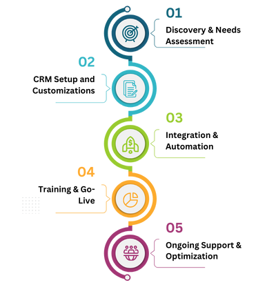 In this step, we set up the CRM by customizing modules, roles, and workflows to fit your business needs. We make sure the system works smoothly for your team, boosting productivity and supporting your goals with a user-friendly setup.